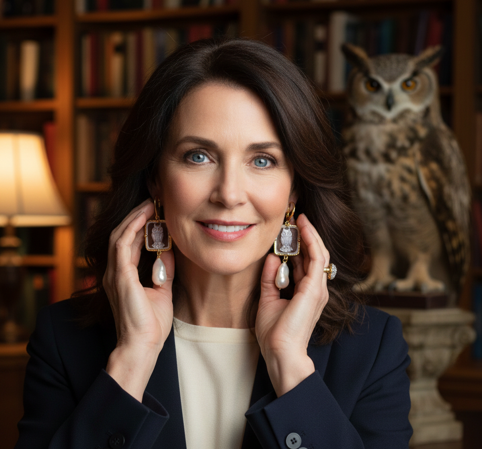 Gli orecchini gufo incisi sulla conchiglia sardonica, la monachella in argento sterling 925 sono realizzati a mano in Italia🇮🇹Â