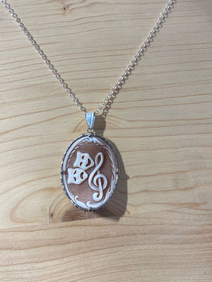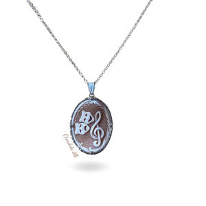Unicità Gioielli donna, unici e irripetibili incisioni realizzate a mano con materiali di prima qualità come il cammeo di conchiglia, il ciondolo chiave di violino, rappresenta la bellezza della musica.Lo stile è studiato con passione per trasmettere unicità per chi lo indossa.