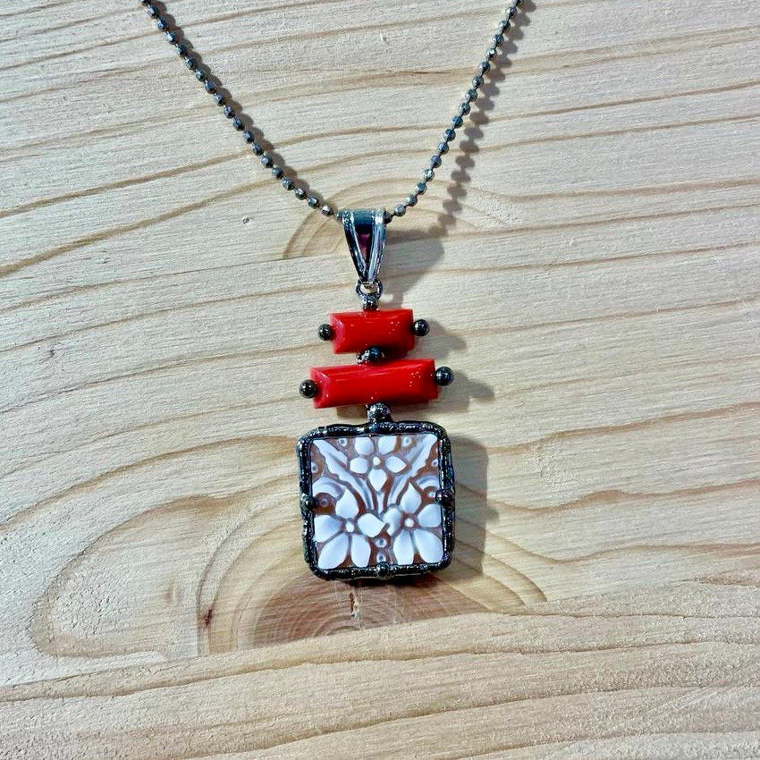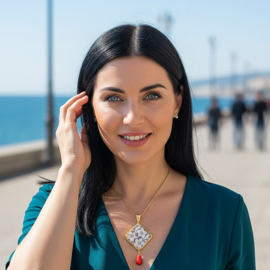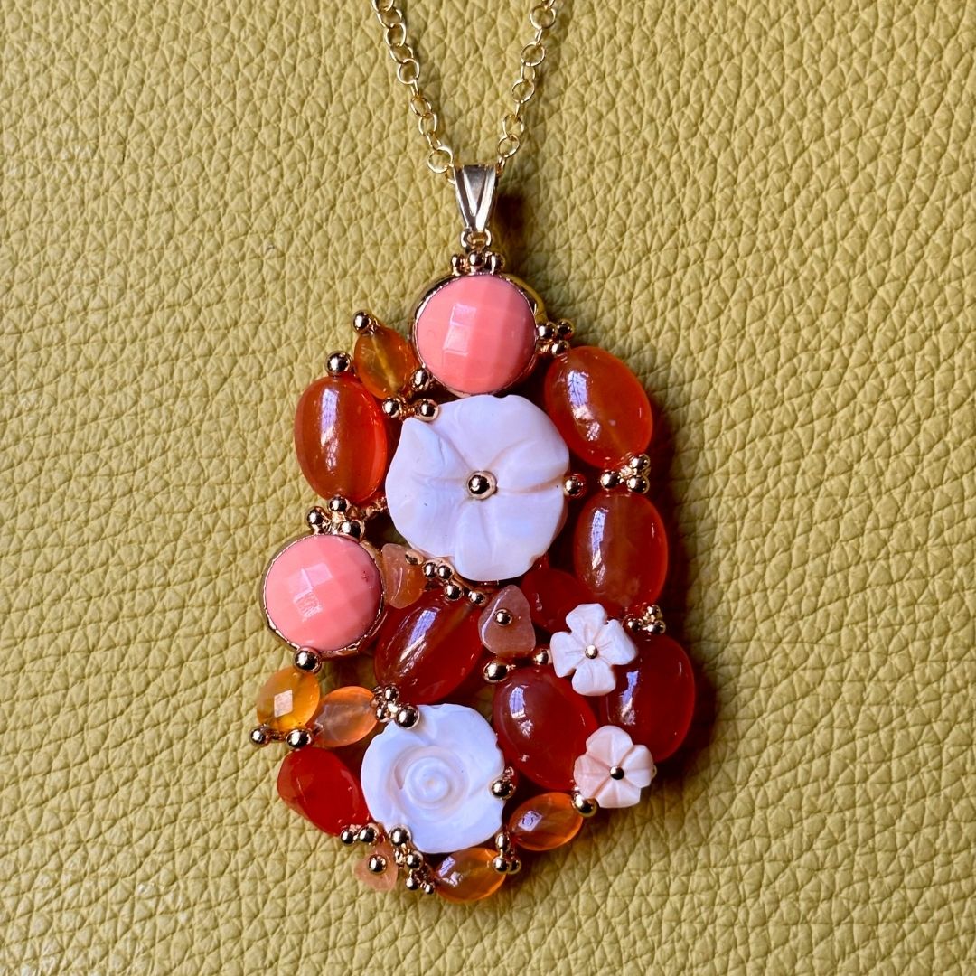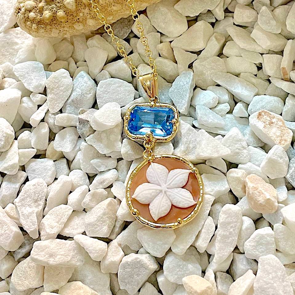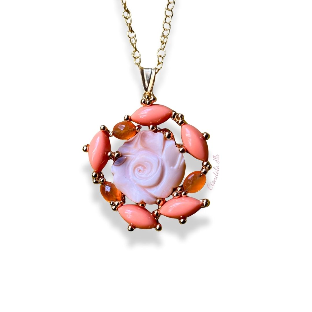 Unicità e creatività Gioielli artigianali, unici e irripetibili incisioni realizzate a mano con materiali di prima qualità come le conchiglie e madreperle e pietre dure, rappresenta la bellezza del design tutto italiano.Lo stile è studiato con passione per trasmettere unicità per chi lo indosserà.