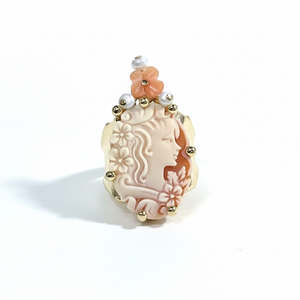 ✓Qualità tecniche✓ Tipo di materiale naturale: cammeo di conchiglia, fiori di conchiglia e microperline, lega freenickel, peso: 12circa gr.