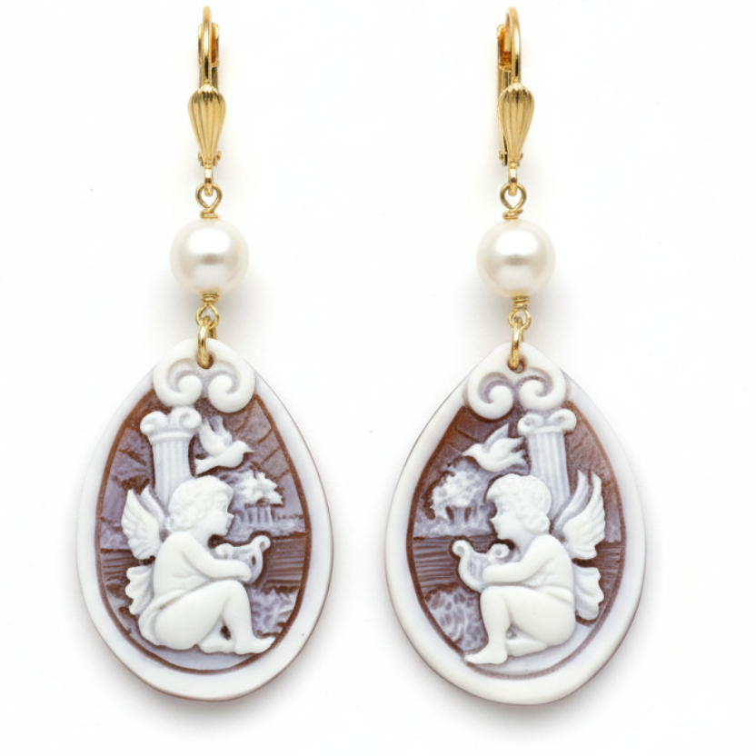 ✓Unicità✓ unici e irripetibili, realizzati a mano con materiali di prima qualità come il cammeo in conchiglia, le perle d'acqua dolce coltivate e argento 925, un design tra materiali e colori naturali. Lo stile è studiato con passione per trasmettere unicità per chi lo indosserà.